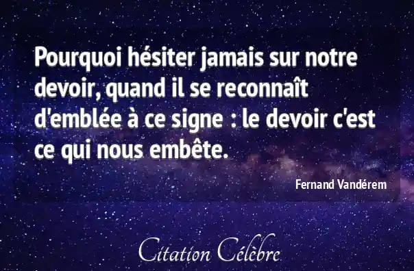 Pourquoi hésiter jamais sur notre devoir, quand il se reconnaît d'emblée à ce signe : le devoir c'est ce qui nous embête.