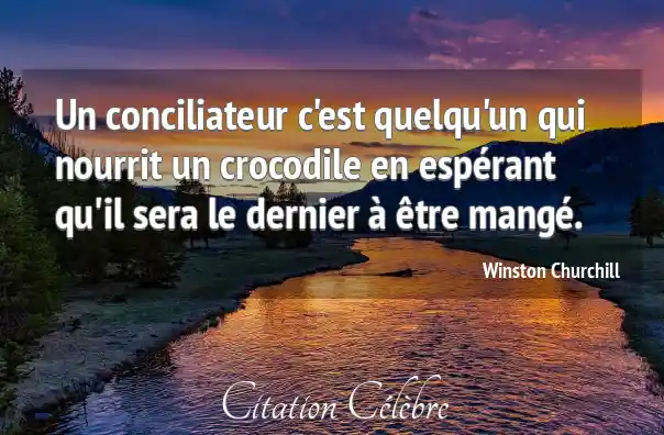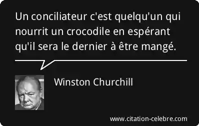 Un conciliateur c'est quelqu'un qui nourrit un crocodile en espérant qu'il sera le dernier à être mangé.