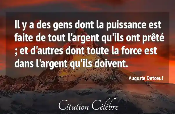 Il y a des gens dont la puissance est faite de tout l'argent qu'ils ont prêté ; et d'autres dont toute la force est dans l'argent qu'ils doivent.