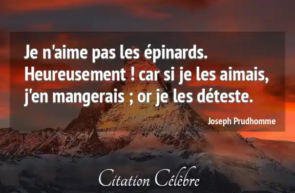 Je n'aime pas les épinards. Heureusement ! car si je les aimais, j'en mangerais ; or je les déteste.