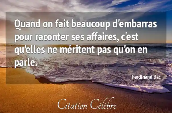 Quand on fait beaucoup d'embarras pour raconter ses affaires, c'est qu'elles ne méritent pas qu'on en parle.