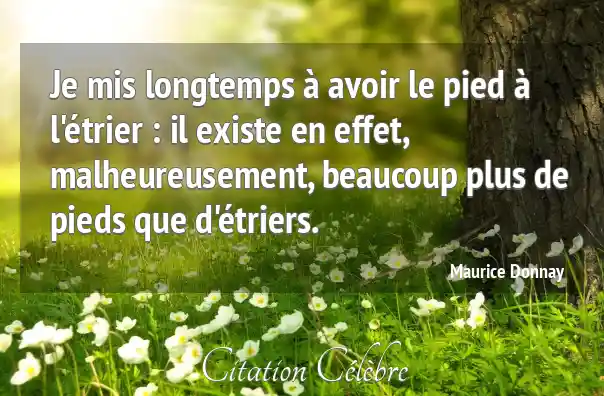 Je mis longtemps à avoir le pied à l'étrier : il existe en effet, malheureusement, beaucoup plus de pieds que d'étriers.