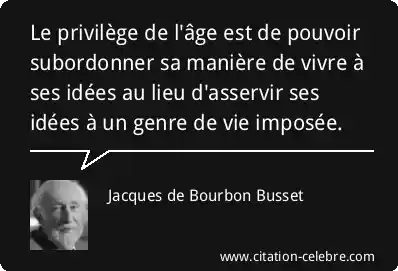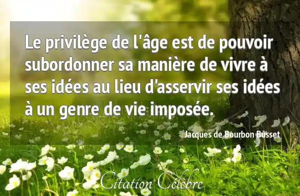 Le privilège de l'âge est de pouvoir subordonner sa manière de vivre à ses idées au lieu d'asservir ses idées à un genre de vie imposée.