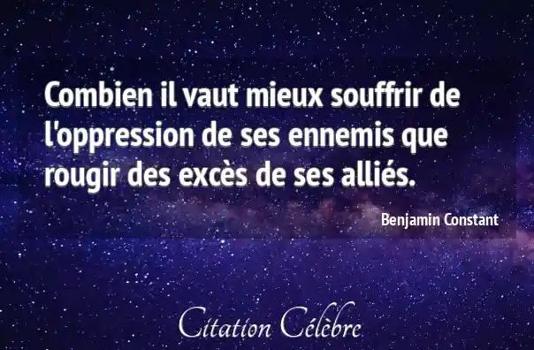 Combien il vaut mieux souffrir de l'oppression de ses ennemis que rougir des excès de ses alliés.