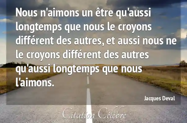Nous n'aimons un être qu'aussi longtemps que nous le croyons différent des autres, et aussi nous ne le croyons différent des autres qu'aussi longtemps que nous l'aimons.