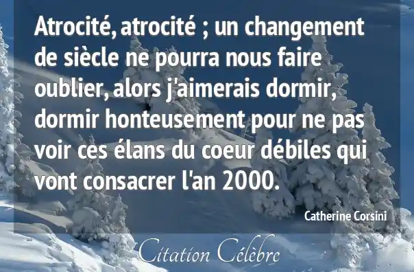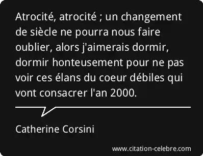 Atrocité, atrocité ; un changement de siècle ne pourra nous faire oublier, alors j'aimerais dormir, dormir honteusement pour ne pas voir ces élans du coeur débiles qui vont consacrer l'an 2000.