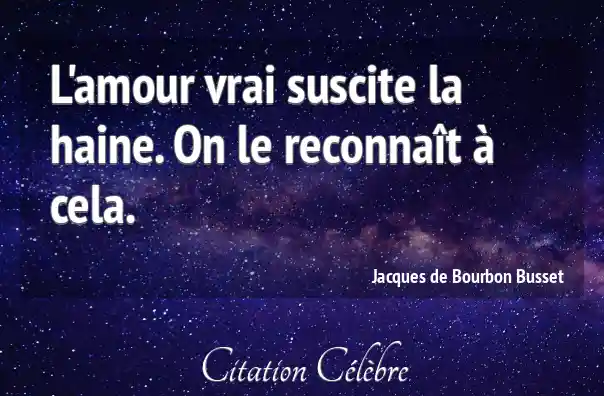 L'amour vrai suscite la haine. On le reconnaît à cela.