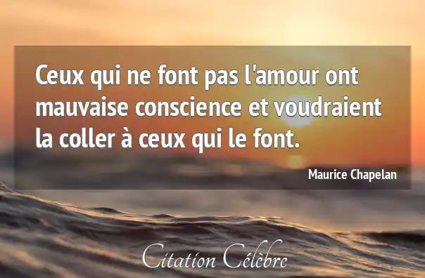 Ceux qui ne font pas l'amour ont mauvaise conscience et voudraient la coller à ceux qui le font.