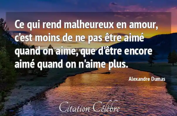 Ce qui rend malheureux en amour, c'est moins de ne pas être aimé quand on aime, que d'être encore aimé quand on n'aime plus.
