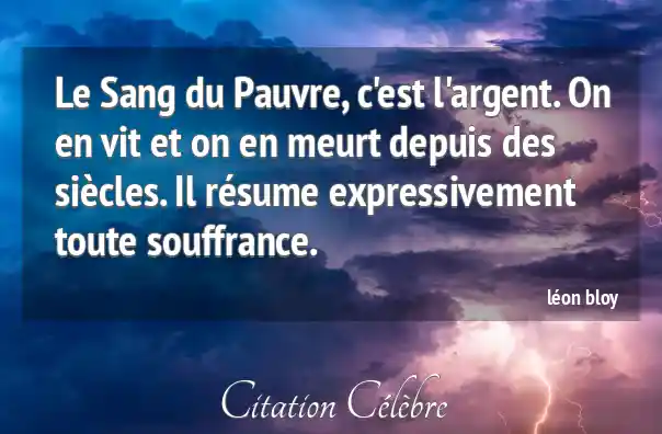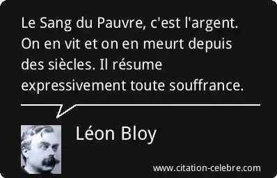 Citation Léon Bloy argent : Le Sang du Pauvre, c'est l'argent. On en vit et...