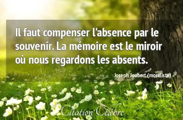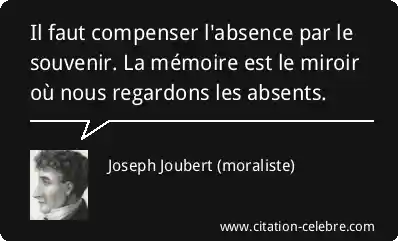 Il faut compenser l'absence par le souvenir. La mémoire est le miroir où nous regardons les absents.