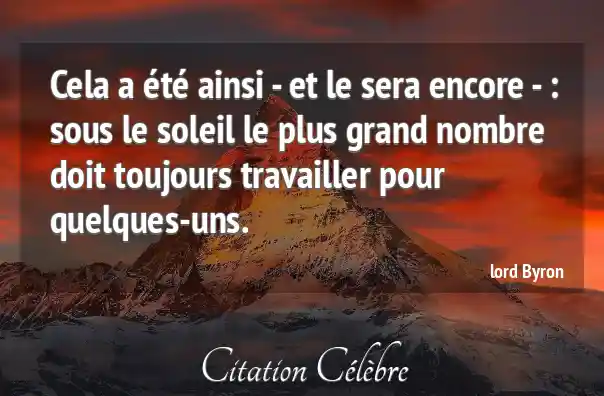Cela a été ainsi - et le sera encore - : sous le soleil le plus grand nombre doit toujours travailler pour quelques-uns.