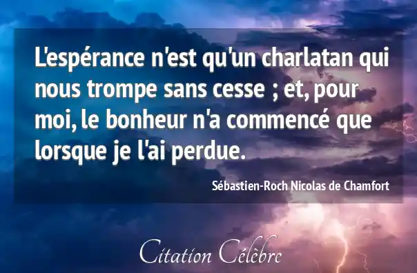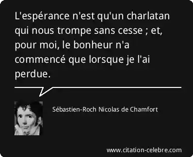 L'espérance n'est qu'un charlatan qui nous trompe sans cesse ; et, pour moi, le bonheur n'a commencé que lorsque je l'ai perdue.