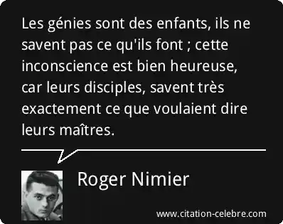 Les génies sont des enfants, ils ne savent pas ce qu'ils font ; cette inconscience est bien heureuse, car leurs disciples, savent très exactement ce que voulaient dire leurs maîtres.