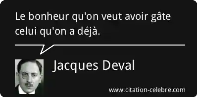 Citation Jacques Deval bonheur : Le bonheur qu'on veut avoir gâte celui qu'on a déjà....