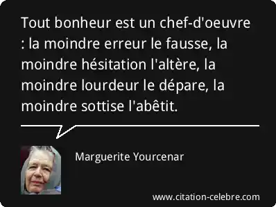 Tout bonheur est un chef-d'oeuvre : la moindre erreur le fausse, la moindre hésitation l'altère, la moindre lourdeur le dépare, la moindre sottise l'abêtit.