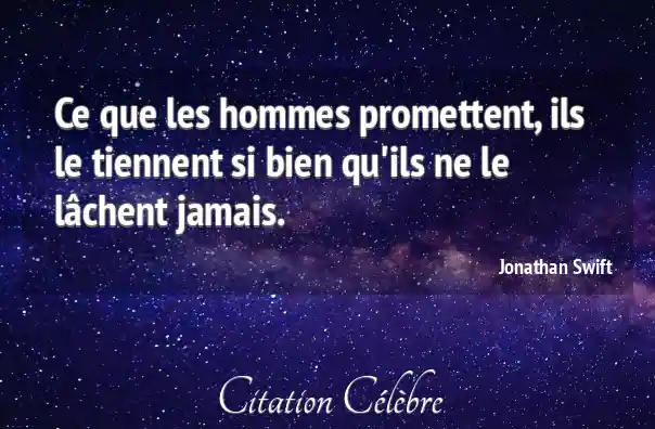 Ce que les hommes promettent, ils le tiennent si bien qu'ils ne le lâchent jamais.