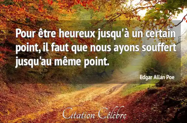 Pour être heureux jusqu'à un certain point, il faut que nous ayons souffert jusqu'au même point.