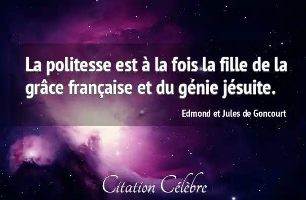 La politesse est à la fois la fille de la grâce française et du génie jésuite.