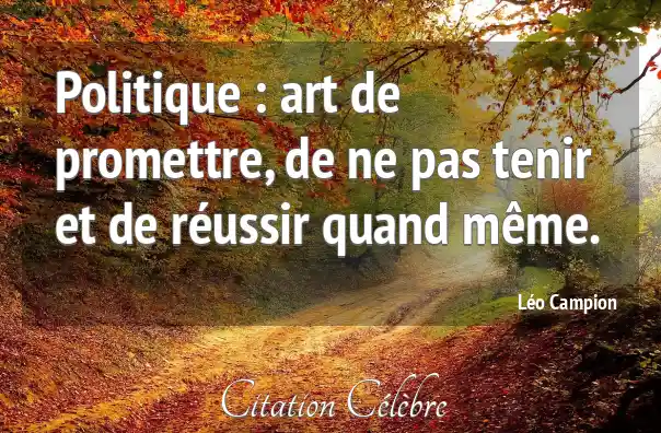 Politique : art de promettre, de ne pas tenir et de réussir quand même.