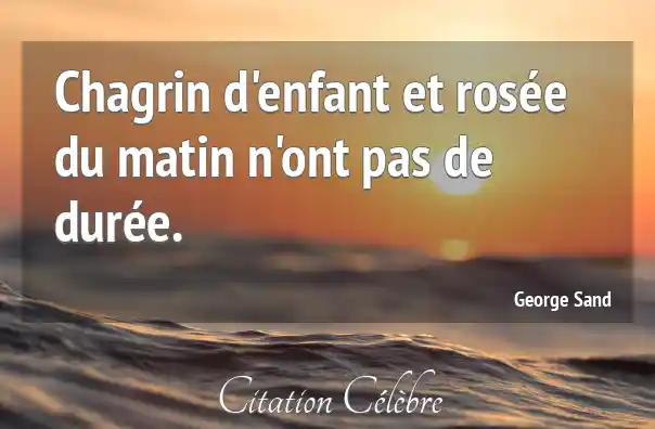 Chagrin d'enfant et rosée du matin n'ont pas de durée.