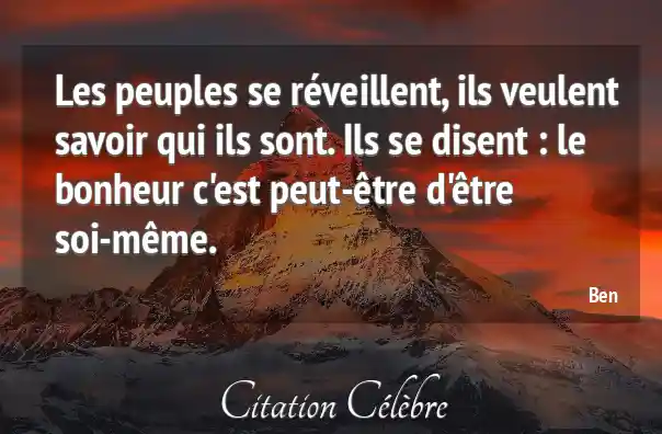 Les peuples se réveillent, ils veulent savoir qui ils sont. Ils se disent : le bonheur c'est peut-être d'être soi-même.