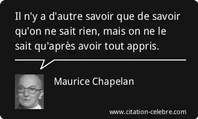 Il n'y a d'autre savoir que de savoir qu'on ne sait rien, mais on ne le sait qu'après avoir tout appris.