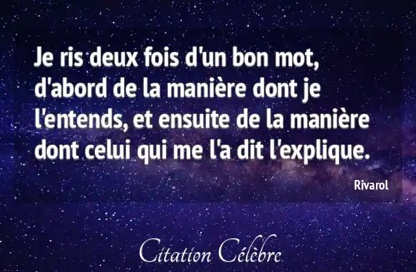 Je ris deux fois d'un bon mot, d'abord de la manière dont je l'entends, et ensuite de la manière dont celui qui me l'a dit l'explique.