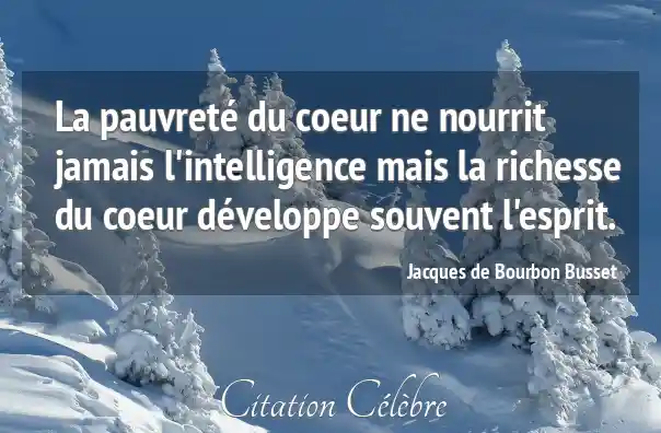 La pauvreté du coeur ne nourrit jamais l'intelligence mais la richesse du coeur développe souvent l'esprit.