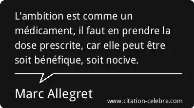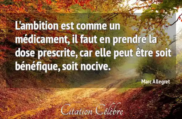 L'ambition est comme un médicament, il faut en prendre la dose prescrite, car elle peut être soit bénéfique, soit nocive.