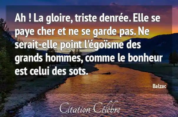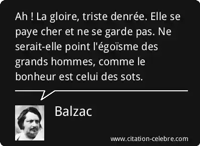 Ah ! La gloire, triste denrée. Elle se paye cher et ne se garde pas. Ne serait-elle point l'égoïsme des grands hommes, comme le bonheur est celui des sots.