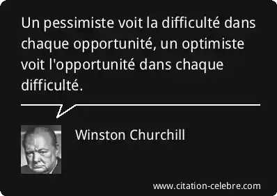 Un pessimiste voit la difficulté dans chaque opportunité, un optimiste voit l'opportunité dans chaque difficulté.