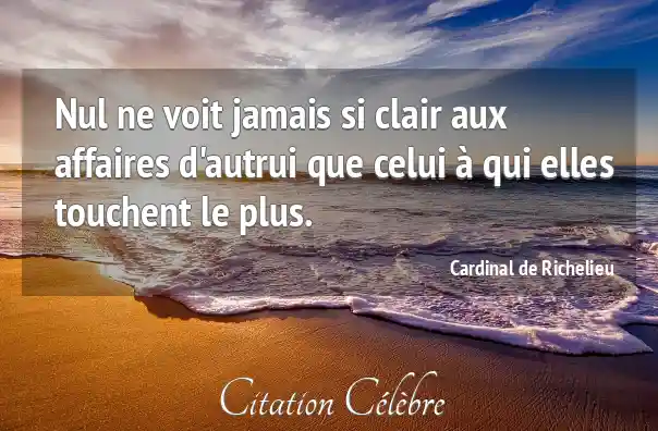 Nul ne voit jamais si clair aux affaires d'autrui que celui à qui elles touchent le plus.