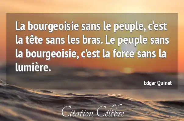 La bourgeoisie sans le peuple, c'est la tête sans les bras. Le peuple sans la bourgeoisie, c'est la force sans la lumière.