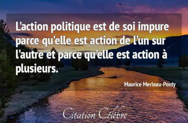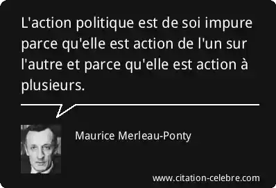 L'action politique est de soi impure parce qu'elle est action de l'un sur l'autre et parce qu'elle est action à plusieurs.