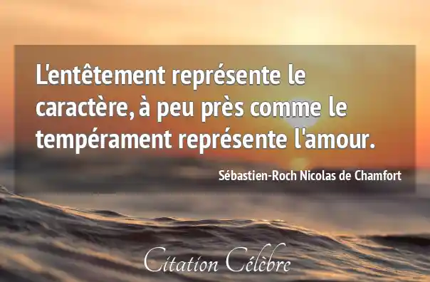 L'entêtement représente le caractère, à peu près comme le tempérament représente l'amour.