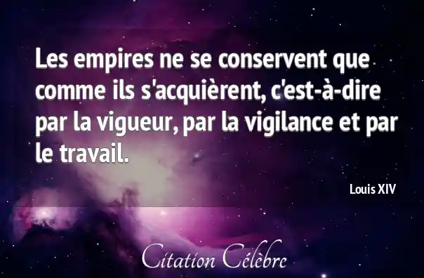 Les empires ne se conservent que comme ils s'acquièrent, c'est-à-dire par la vigueur, par la vigilance et par le travail.