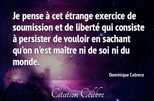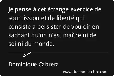 Je pense à cet étrange exercice de soumission et de liberté qui consiste à persister de vouloir en sachant qu'on n'est maître ni de soi ni du monde.