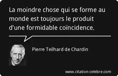 La moindre chose qui se forme au monde est toujours le produit d'une formidable coïncidence.
