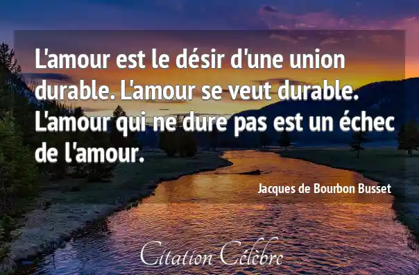 L'amour est le désir d'une union durable. L'amour se veut durable. L'amour qui ne dure pas est un échec de l'amour.