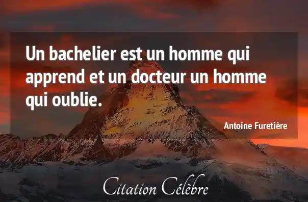 Un bachelier est un homme qui apprend et un docteur un homme qui oublie.