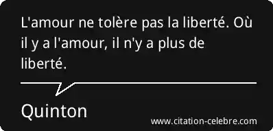L'amour ne tolère pas la liberté. Où il y a l'amour, il n'y a plus de liberté.