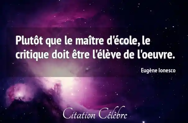 Plutôt que le maître d'école, le critique doit être l'élève de l'oeuvre.