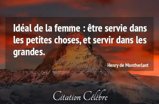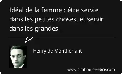 Idéal de la femme : être servie dans les petites choses, et servir dans les grandes.