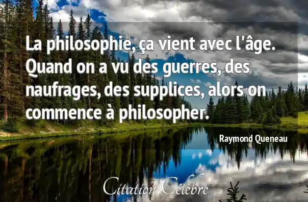 La philosophie, ça vient avec l'âge. Quand on a vu des guerres, des naufrages, des supplices, alors on commence à philosopher.
