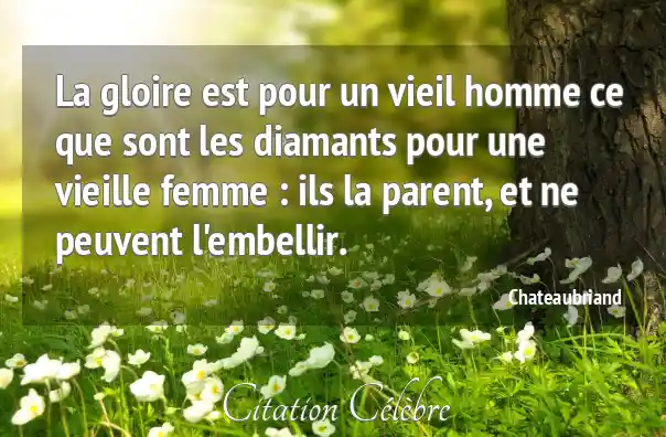 La gloire est pour un vieil homme ce que sont les diamants pour une vieille femme : ils la parent, et ne peuvent l'embellir.