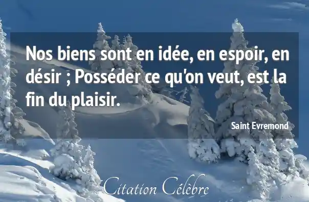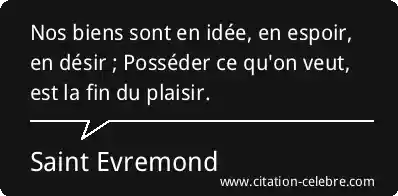 Nos biens sont en idée, en espoir, en désir ; Posséder ce qu'on veut, est la fin du plaisir.