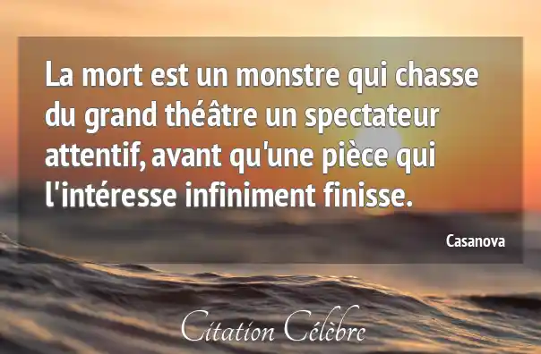 La mort est un monstre qui chasse du grand théâtre un spectateur attentif, avant qu'une pièce qui l'intéresse infiniment finisse.