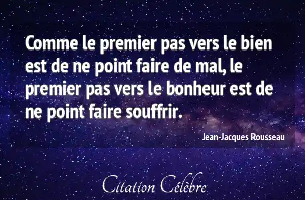Comme le premier pas vers le bien est de ne point faire de mal, le premier pas vers le bonheur est de ne point faire souffrir.