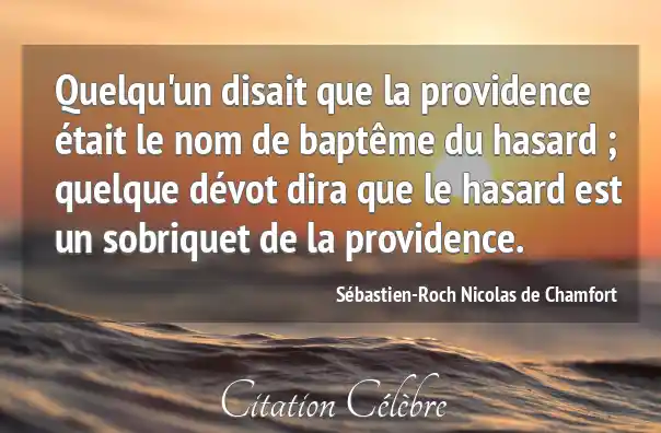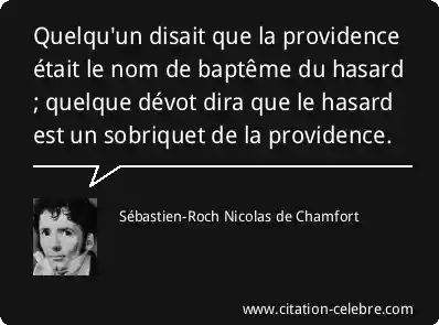 Quelqu'un disait que la providence était le nom de baptême du hasard ; quelque dévot dira que le hasard est un sobriquet de la providence.